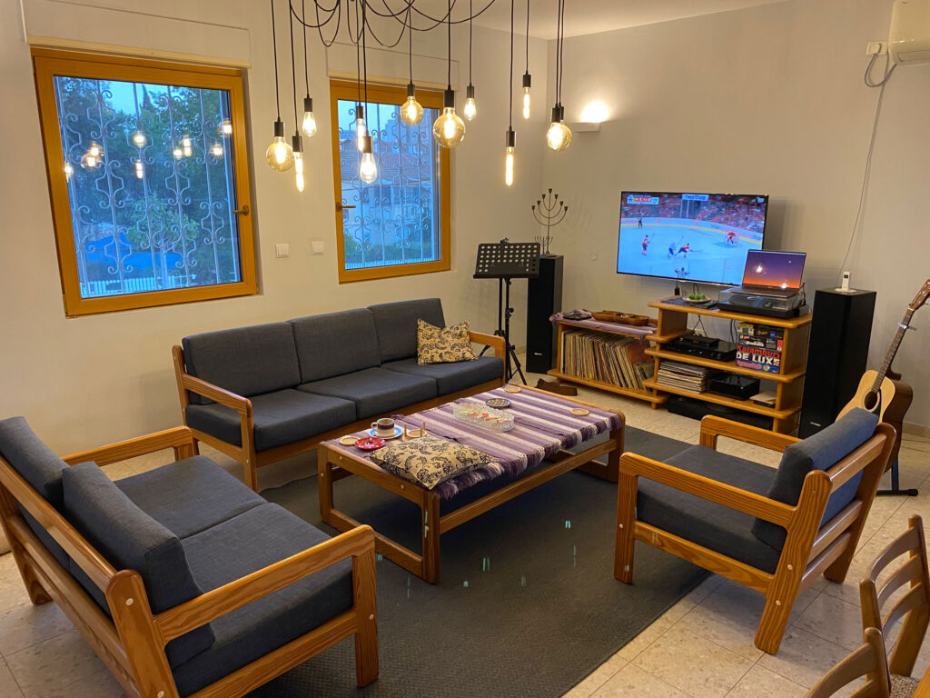 Photo: Not much adventuring this week aside from the mall, but I did manage to get in one game of the Stanley Cup finals. I know where to get bootleg replays of the game over the Internet, so the next day, without looking at the scores previously, I hooked up my laptop to the TV and stereo, and enjoyed the game and the surprising Oiler victory. Hockey Night in Beersheva!